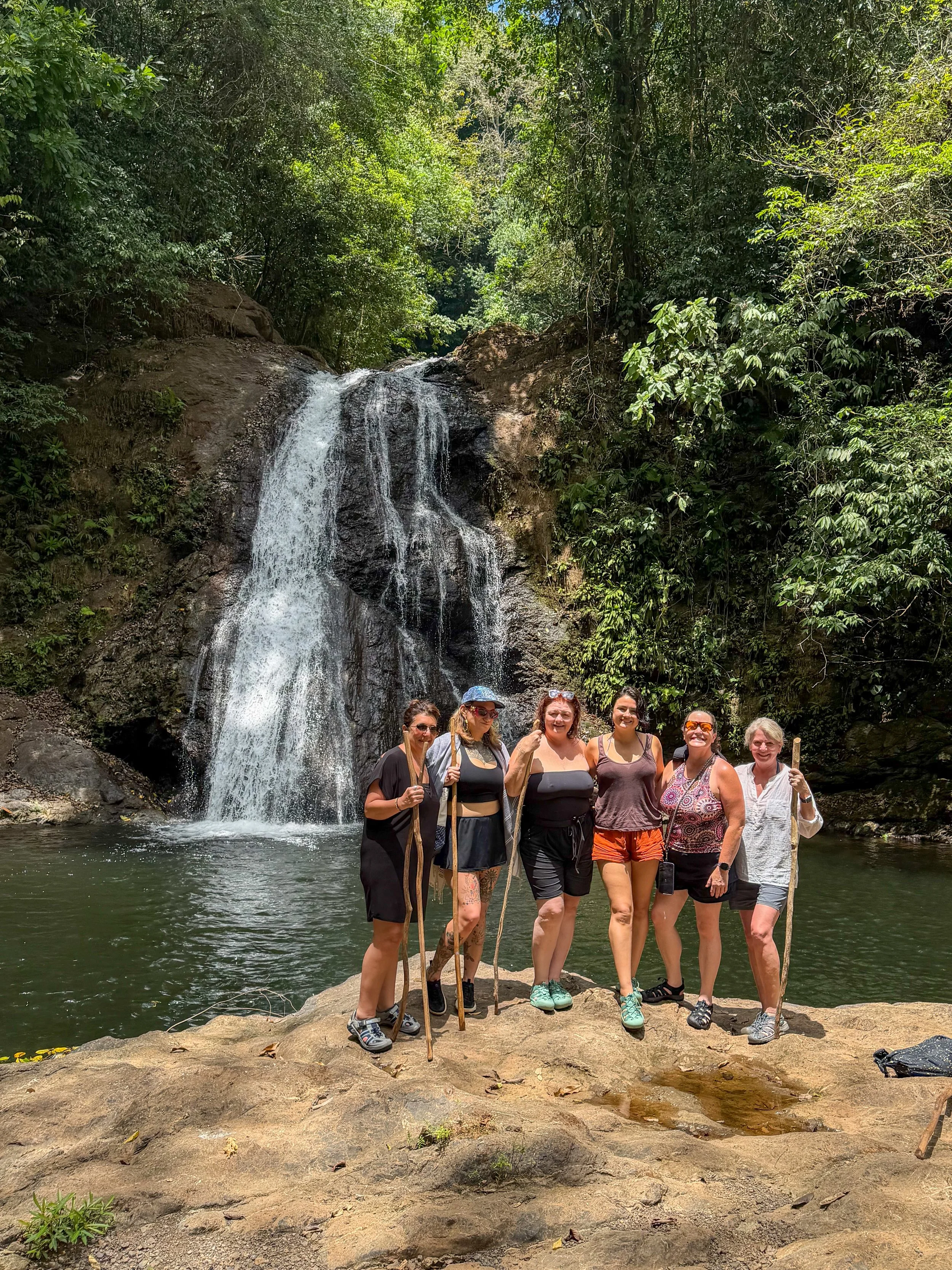 We leave early for a waterfall experience, surrounded by lush jungle and fresh water—an energizing and deeply grounding reset.