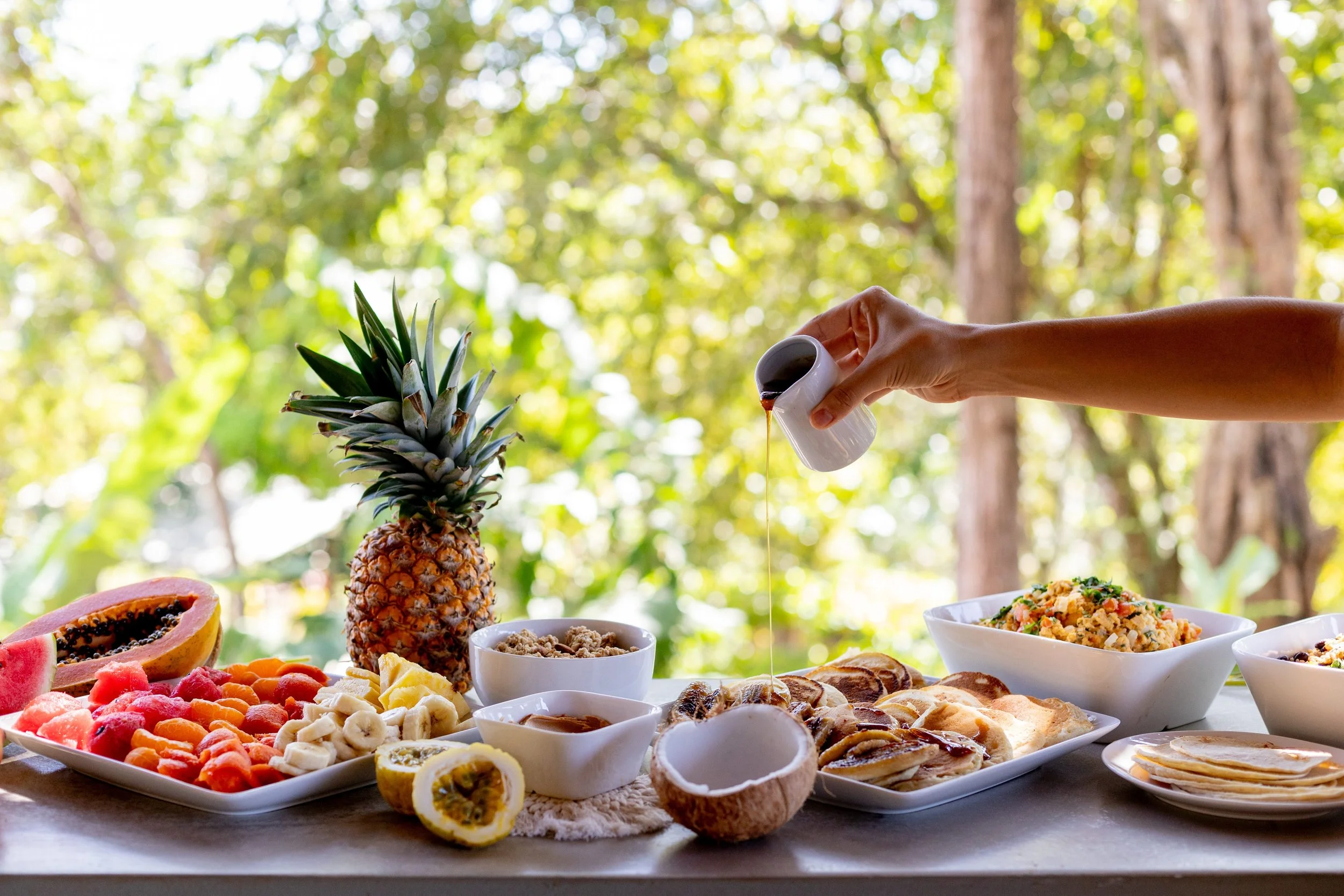 All dietary needs can be accommodated with love and care. Each meal is served in the open-air dining space, surrounded by the sounds of the jungle and the warmth of community.